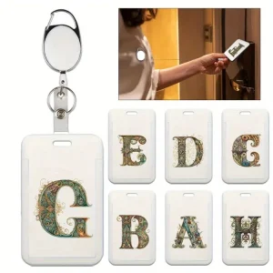 Multifunctional Employee Work Badge with Retractable Buckle Plastic Id Card Holders Student Badge Card Graphic Letter Pattern