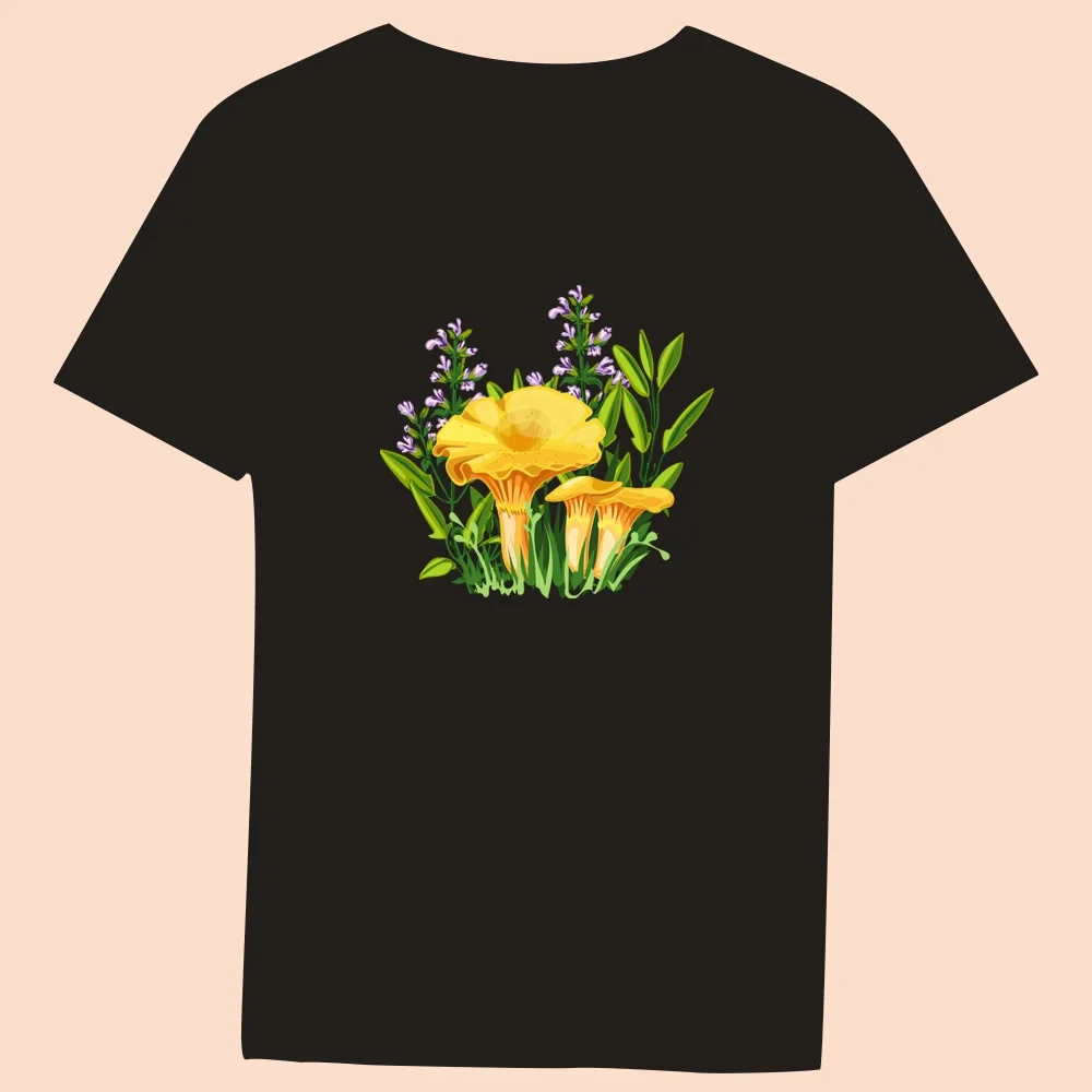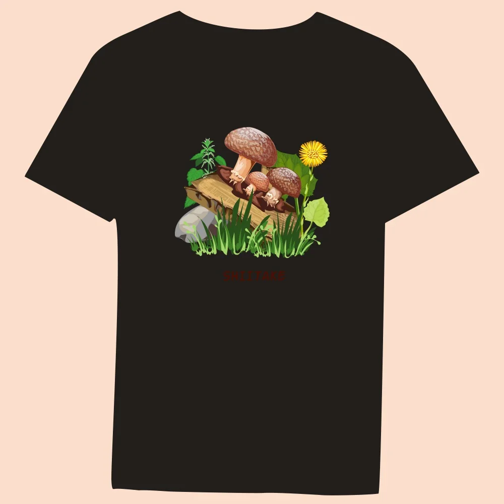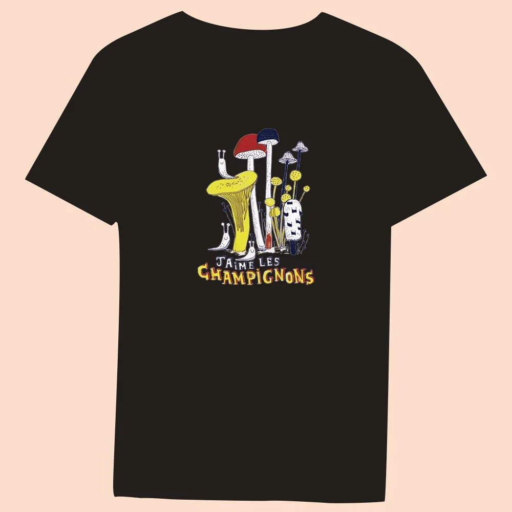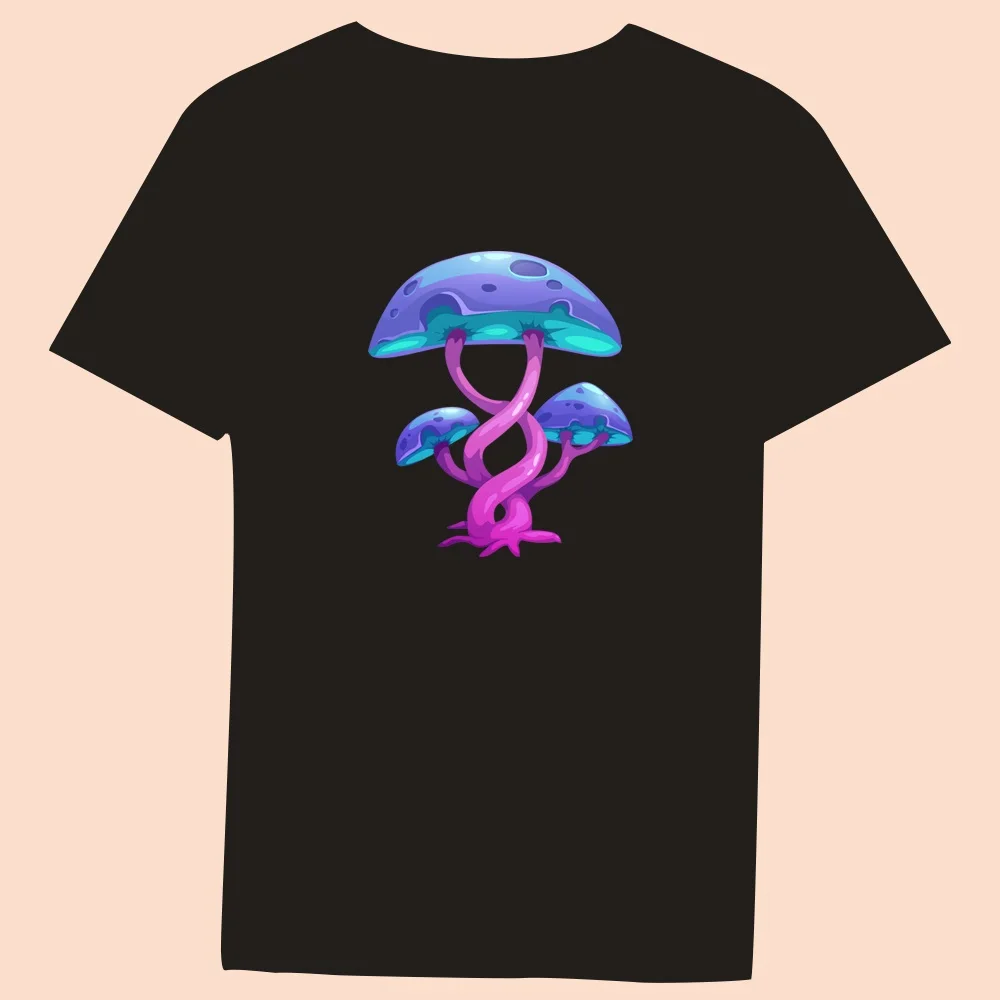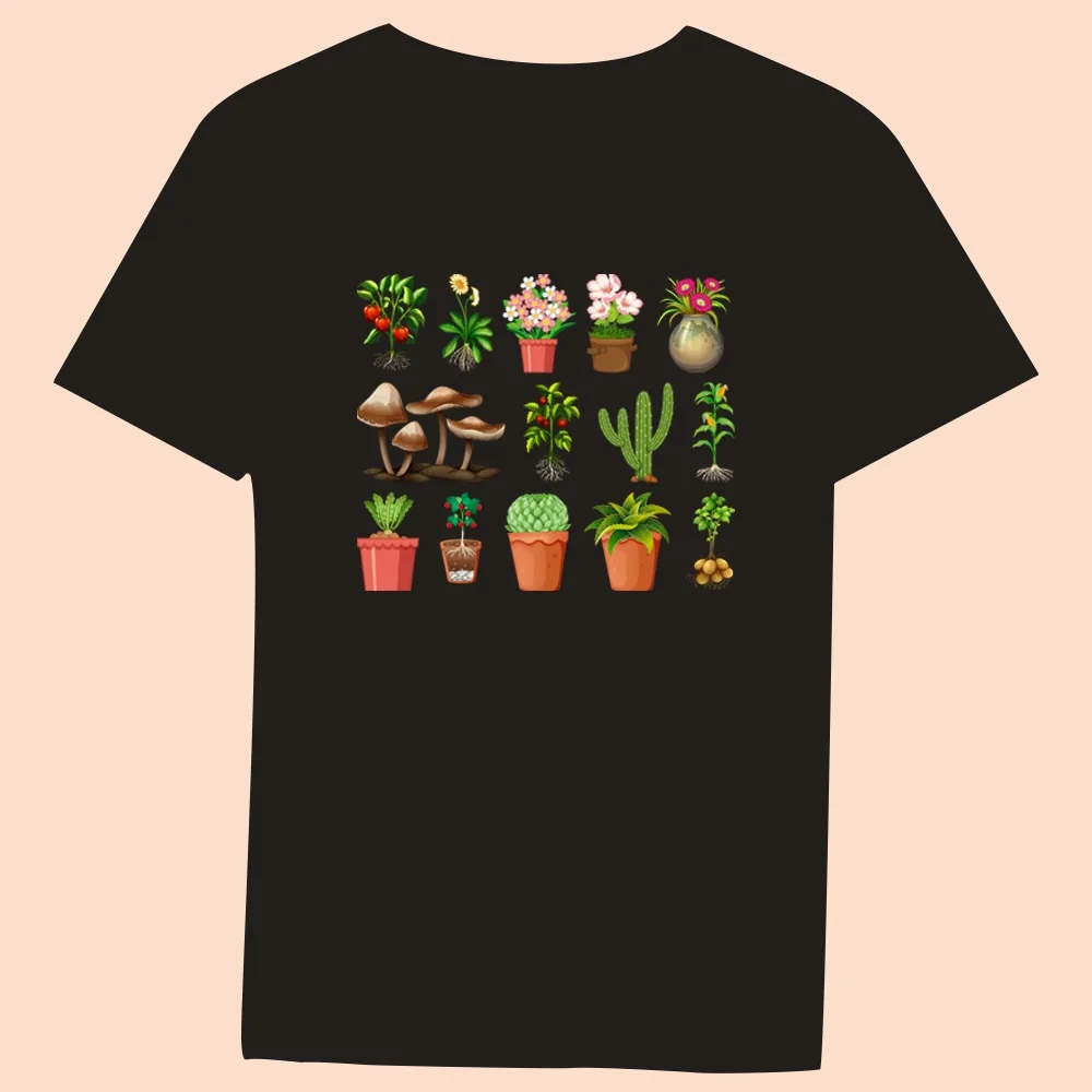 2024 Hot Sale Women’s Black T-Shirt Casual Top Mushroom Print Series Round Neck Ladies Slim Fit Commuter Short Sleeve Ladies