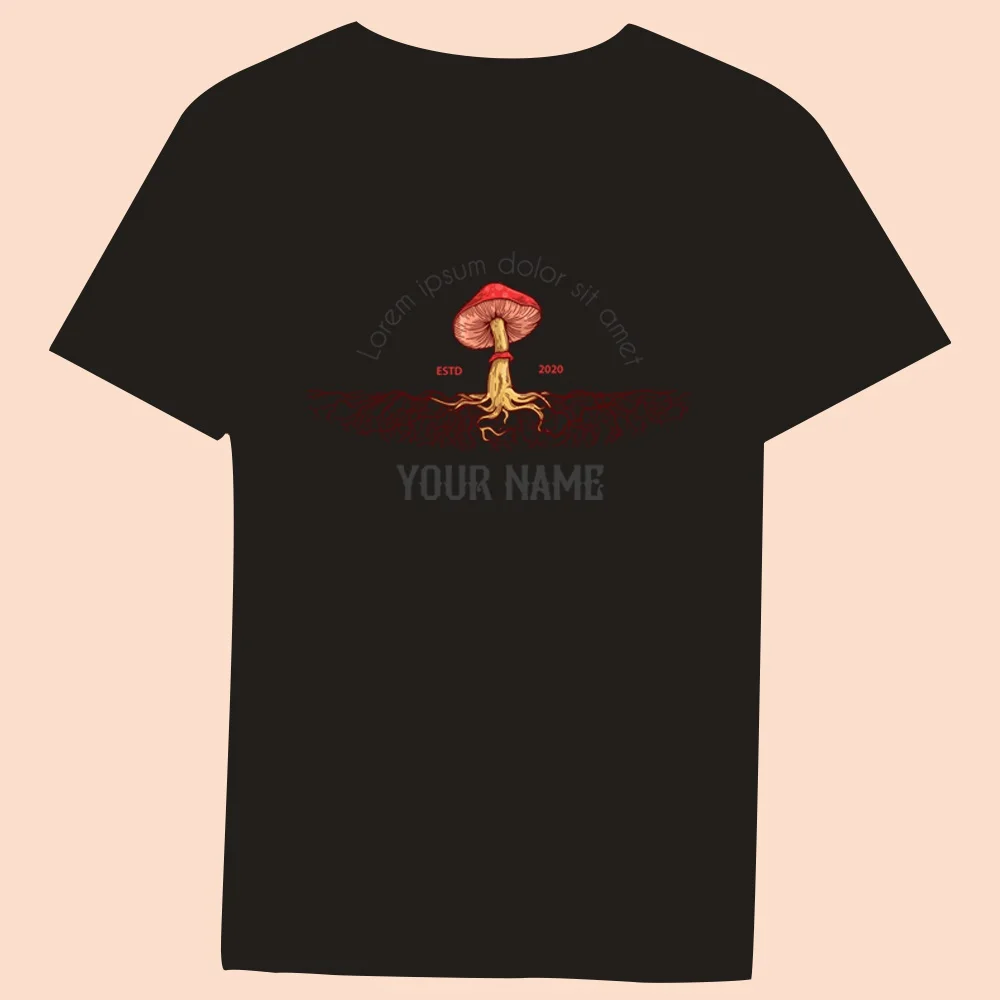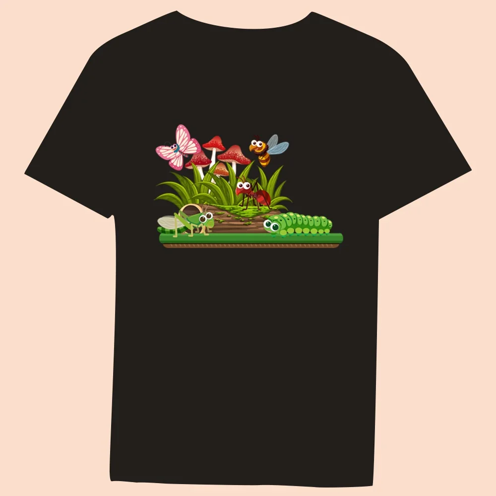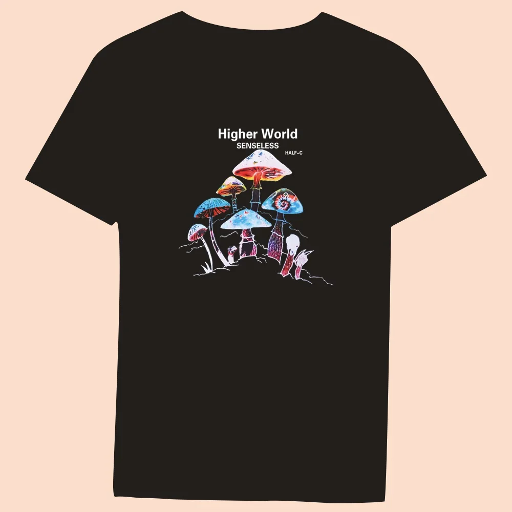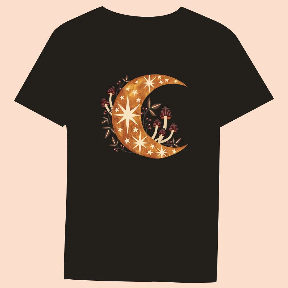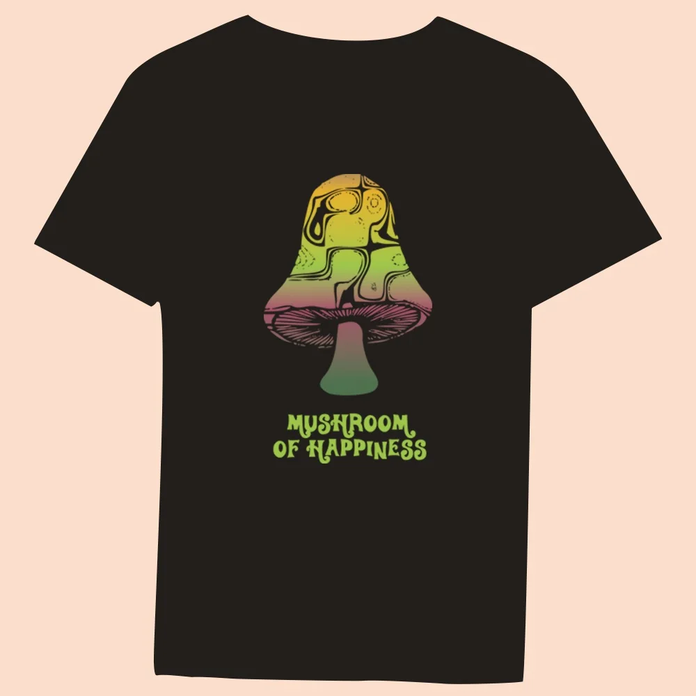 2024 Hot Sale Women’s Black T-Shirt Casual Top Mushroom Print Series Round Neck Ladies Slim Fit Commuter Short Sleeve Ladies