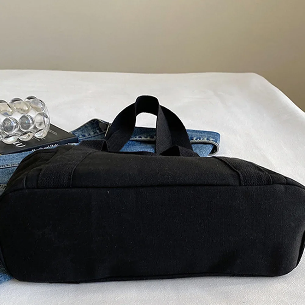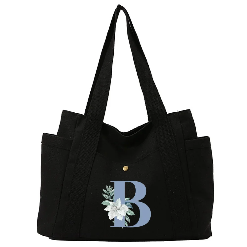 Canvas Bag Large Capacity Foldable Shopping Bags Blue Series Portable Single Shoulder Pouch Washable Casual Commuting Bags