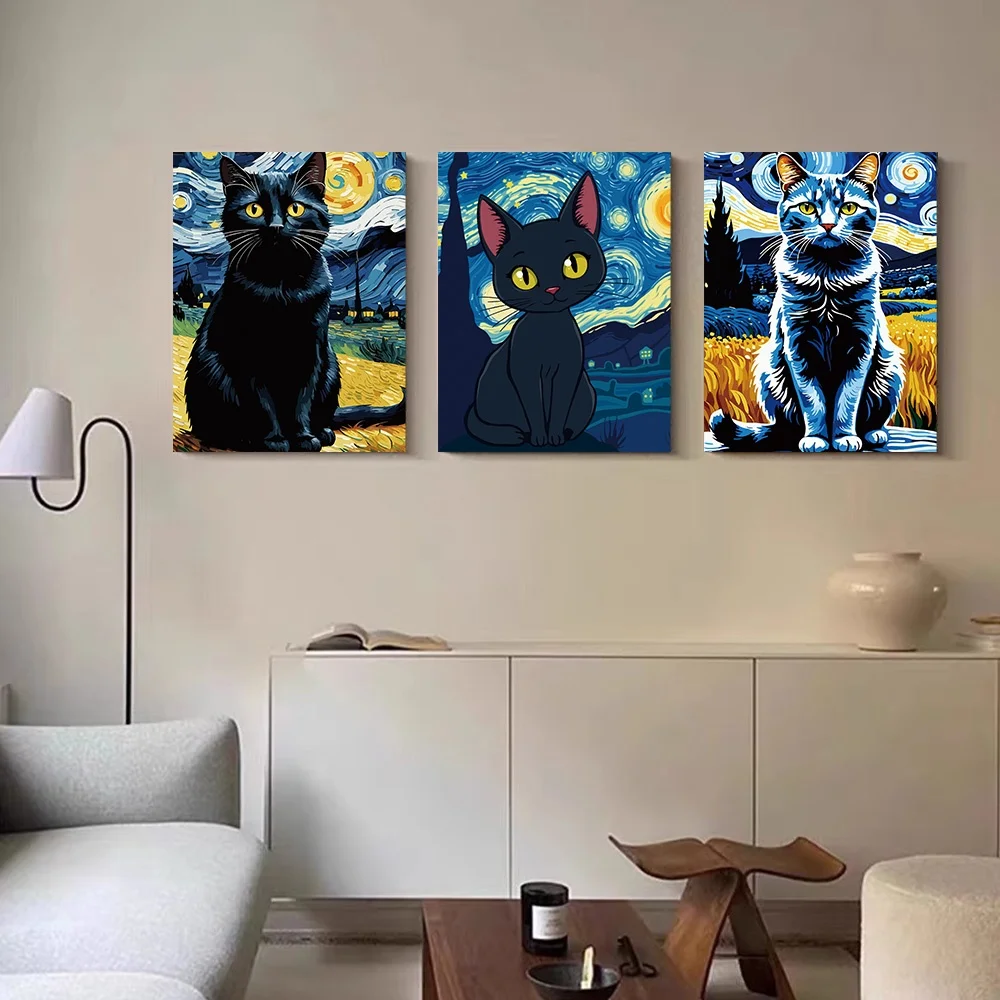 Cat Oil Painting Art Print Wall Art yet Painting Creative Cartoon Graffiti Canvas Suitable for Living Areas Offices Wall Decor