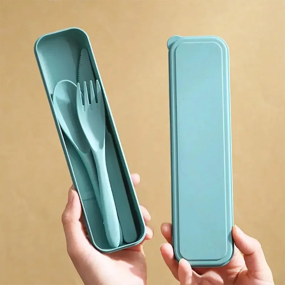 Durable Wheat Straw Dinnerware Set 3Pcs Portable Reusable Tableware Set Dustproof Picnic Dinnerware Black Floral Letter Pattern