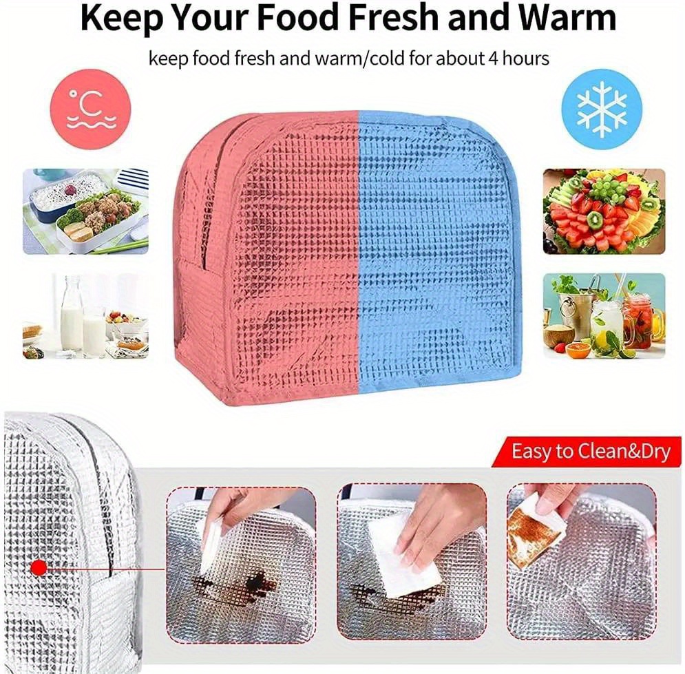 Insulated Lunch Bag, Thermal Bento Tote, Handbag Rectangular Food Carrier with Zipper Closure Non-food Contact, Ice Pack Picnic Bag, back To School