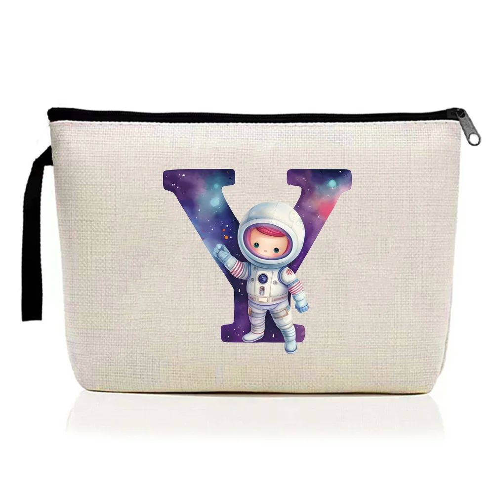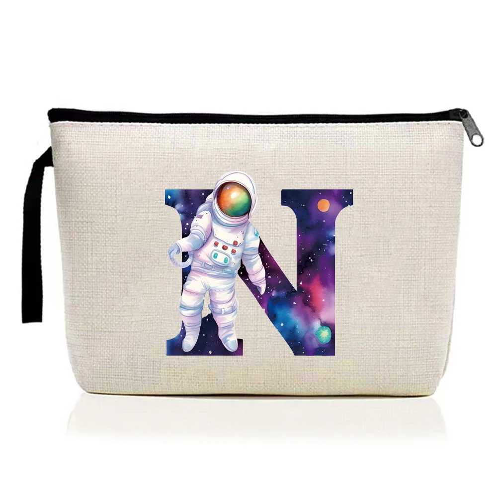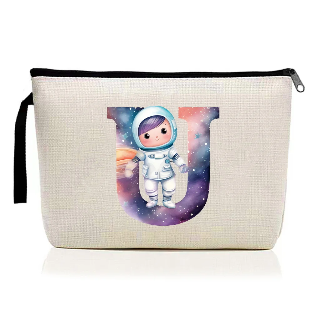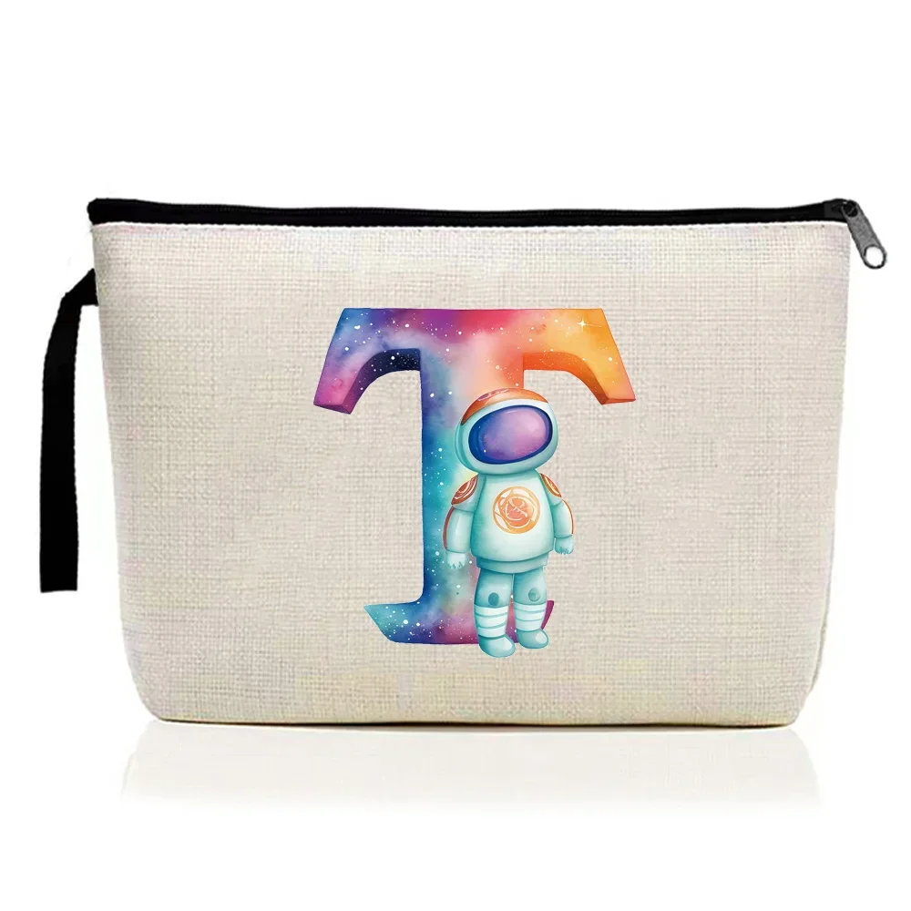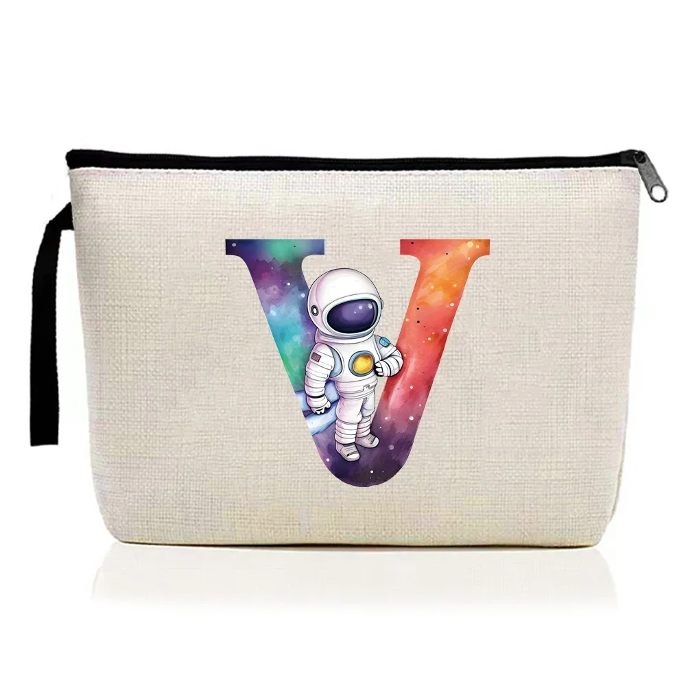 Makeup Bag Portable Paper Cash Pack Toiletry Handbag Large Capacity Women’s Zipper Cosmetic Bags Astronaut Letter Series