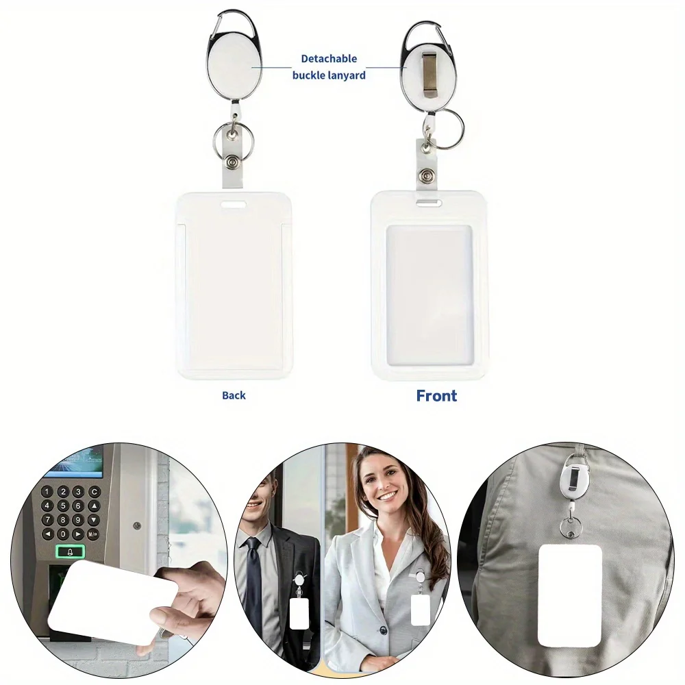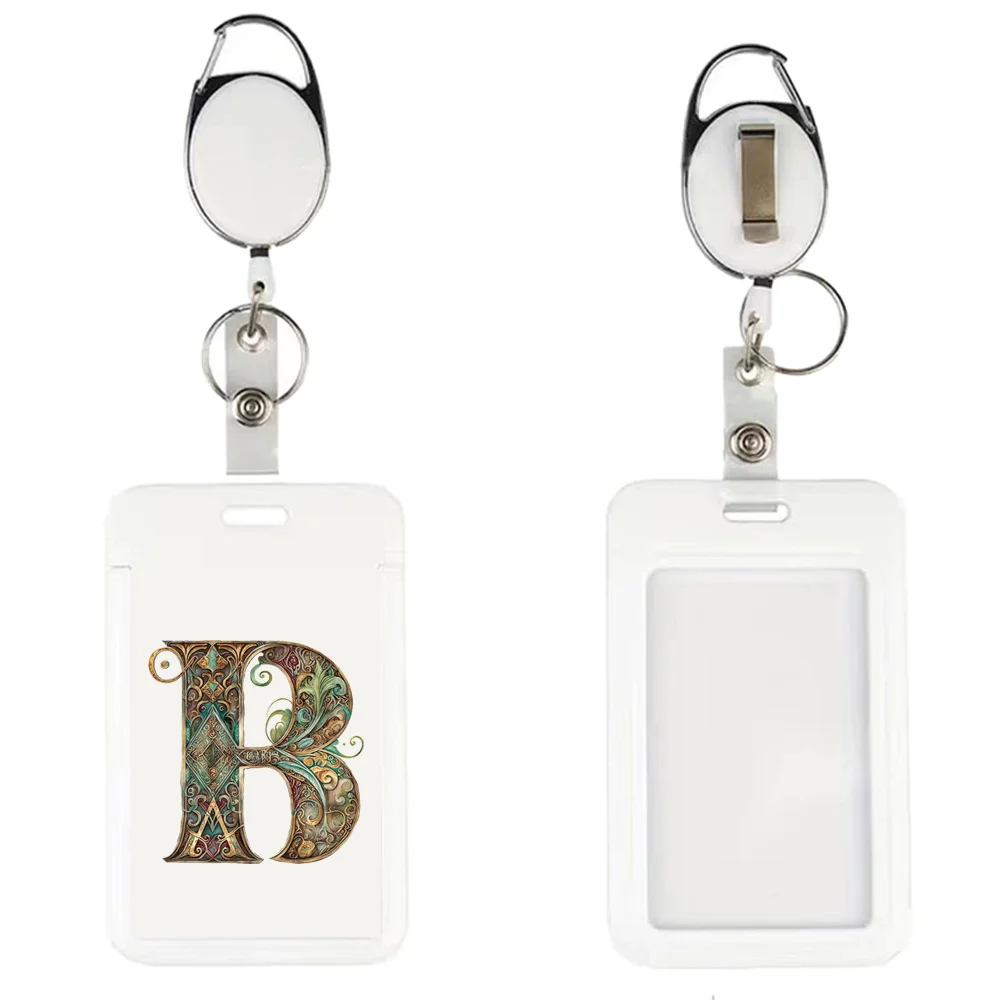 Multifunctional Employee Work Badge with Retractable Buckle Plastic Id Card Holders Student Badge Card Graphic Letter Pattern