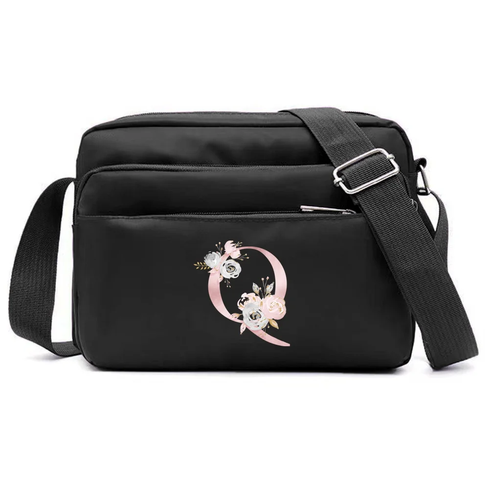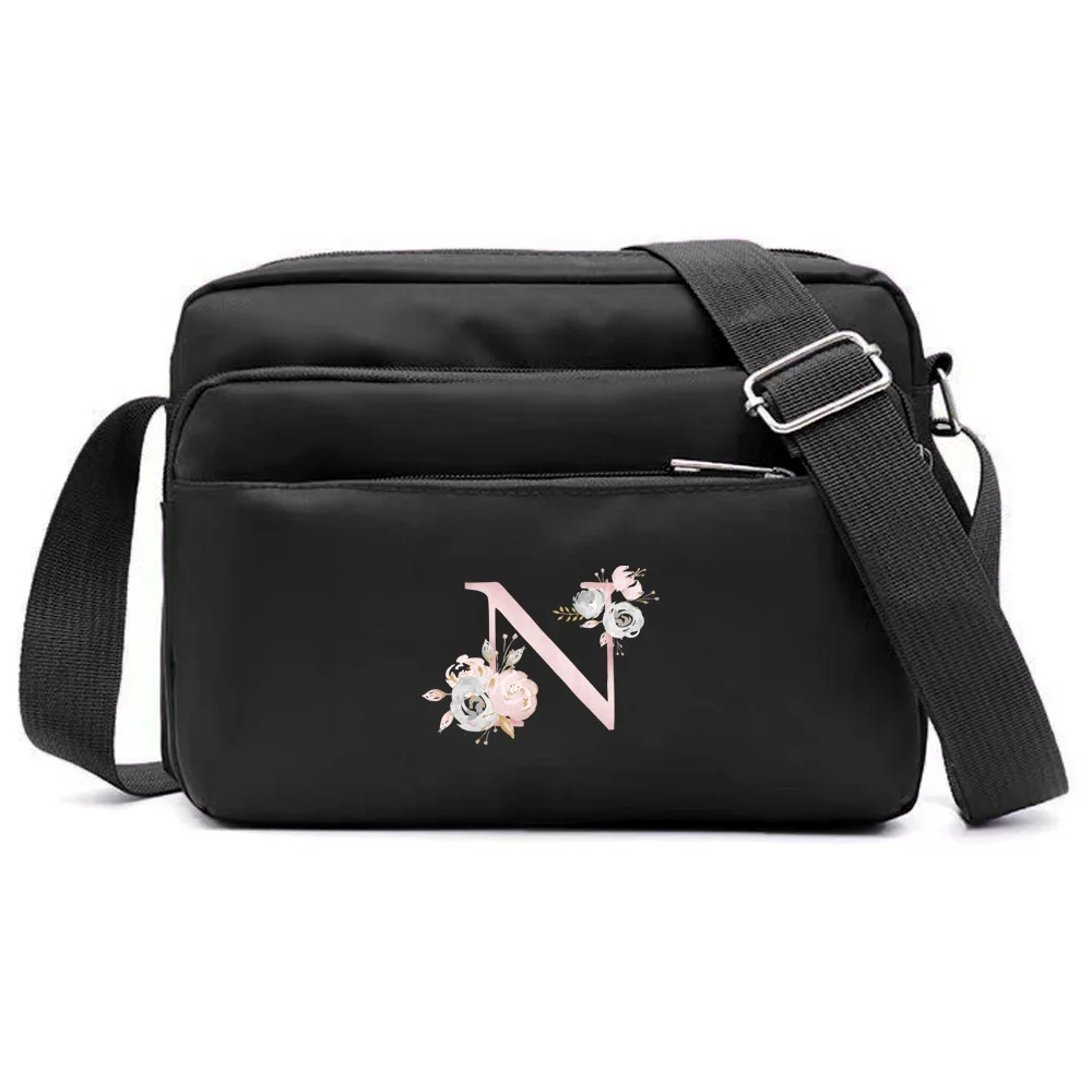 New Simple Black Storage Bag Multi-layer Travel Leisure One Shoulder Crossbody Bag Pink Flower Letter Series Printing Pattern