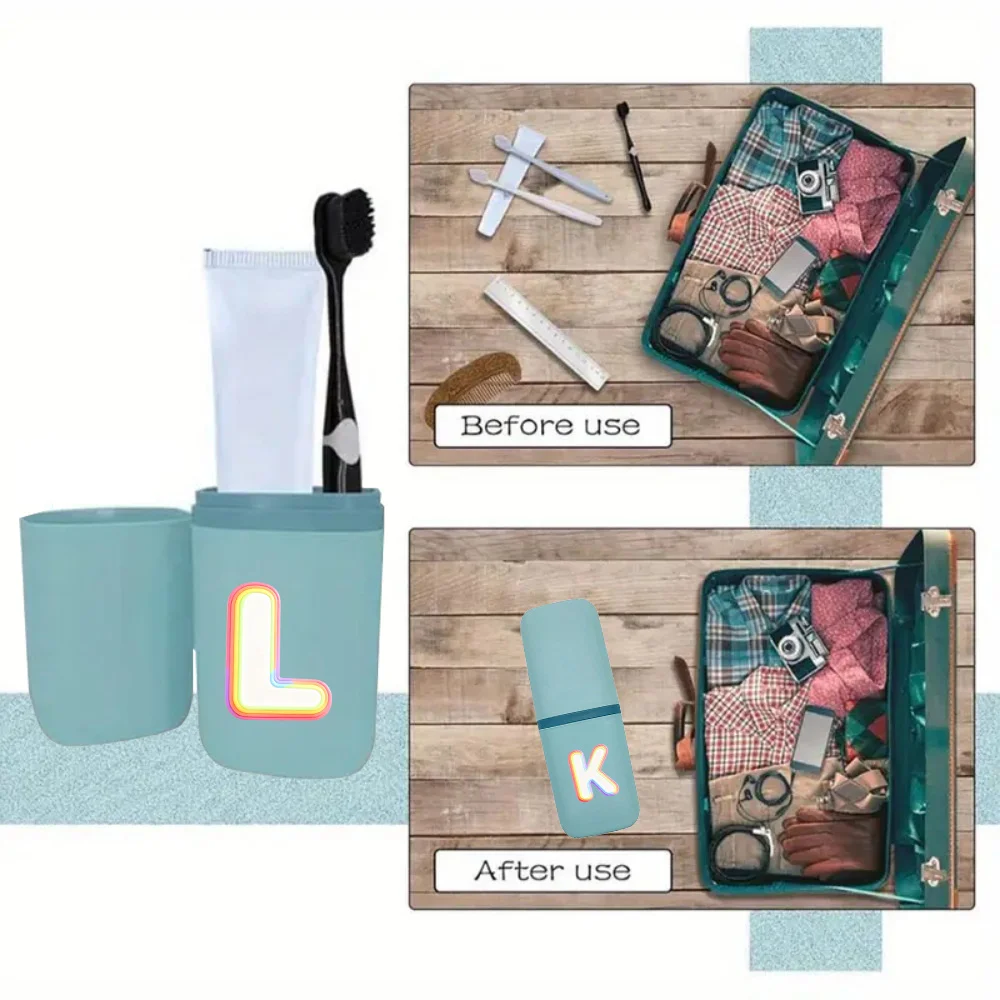 Portable Toothbrush Organizer Box Dustproof Wash Cup Practical Bathroom Supplies Travel Accessories Rainbow Flow Letter Pattern
