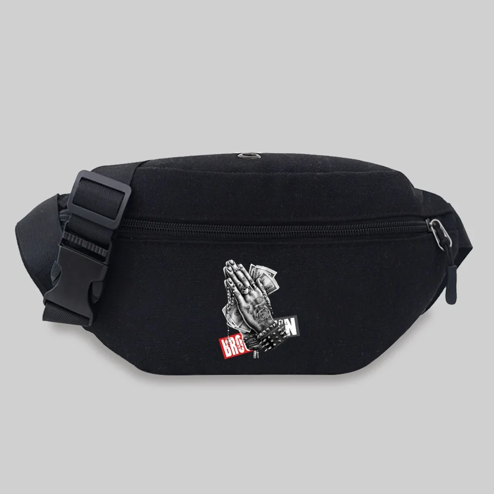 Waist Pack Outdoor Sports Bag Canvas Pouch Hand Pattern Series Lightweight Black Leisure Chest Bag Wild Fanny Pack 2025