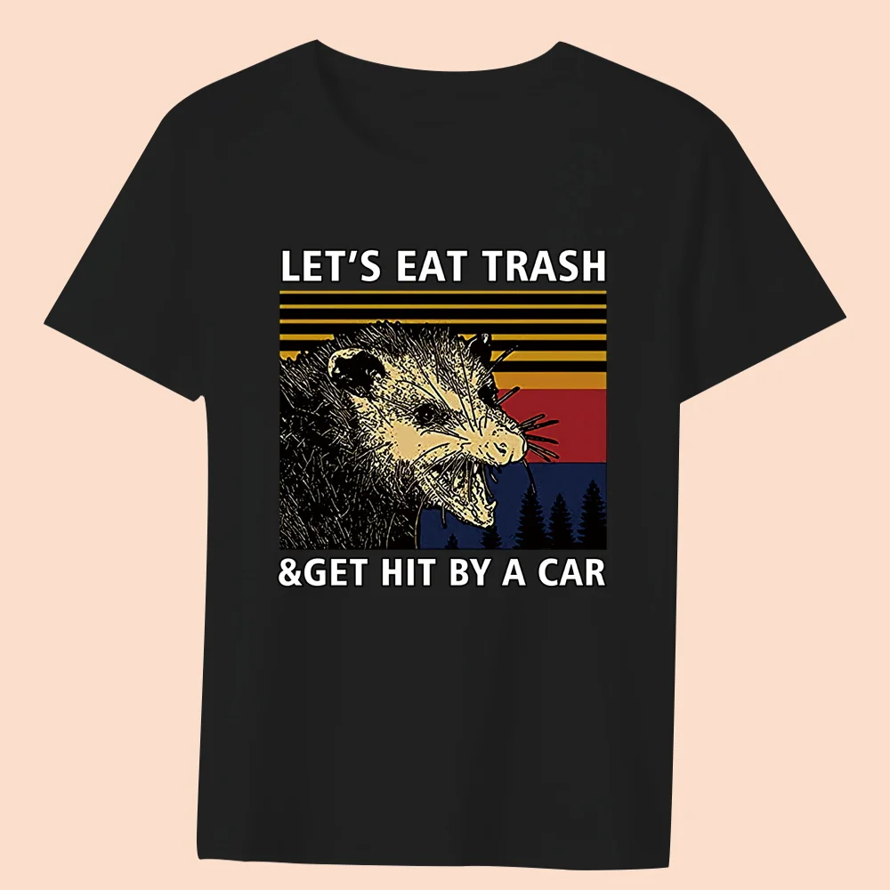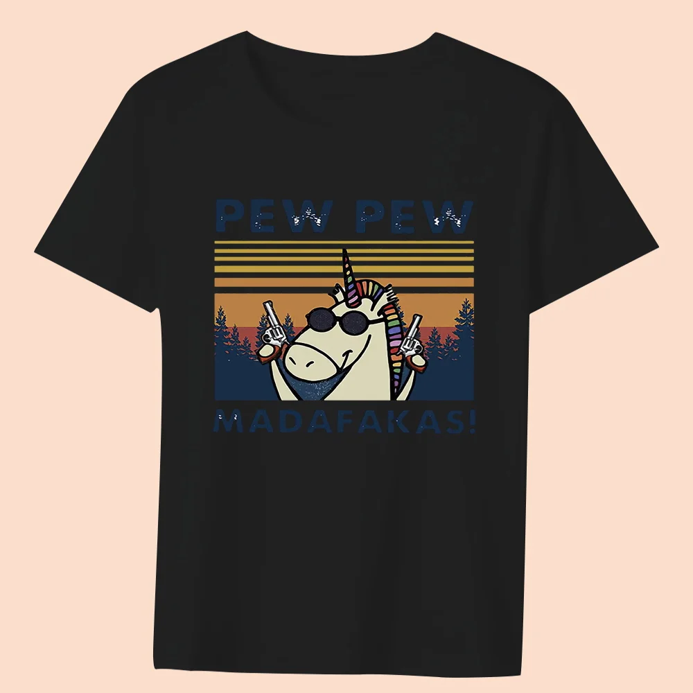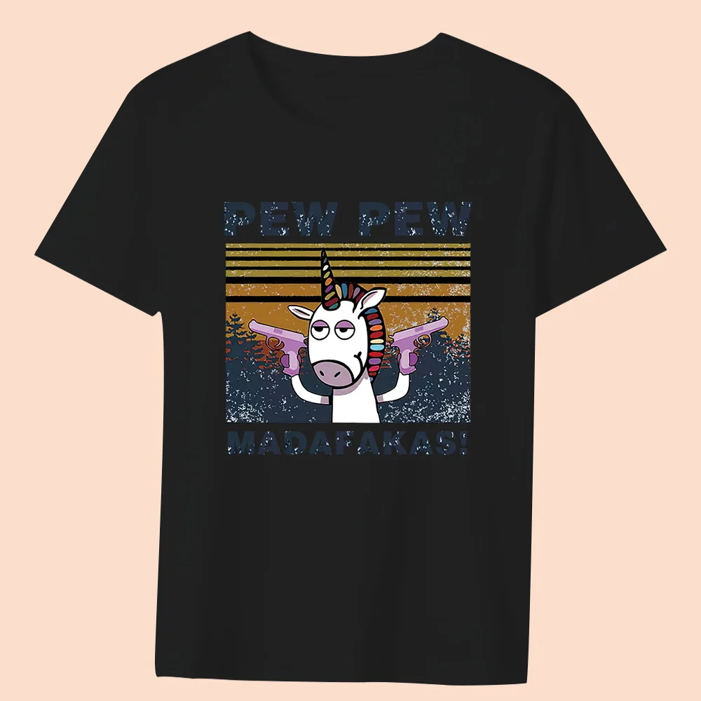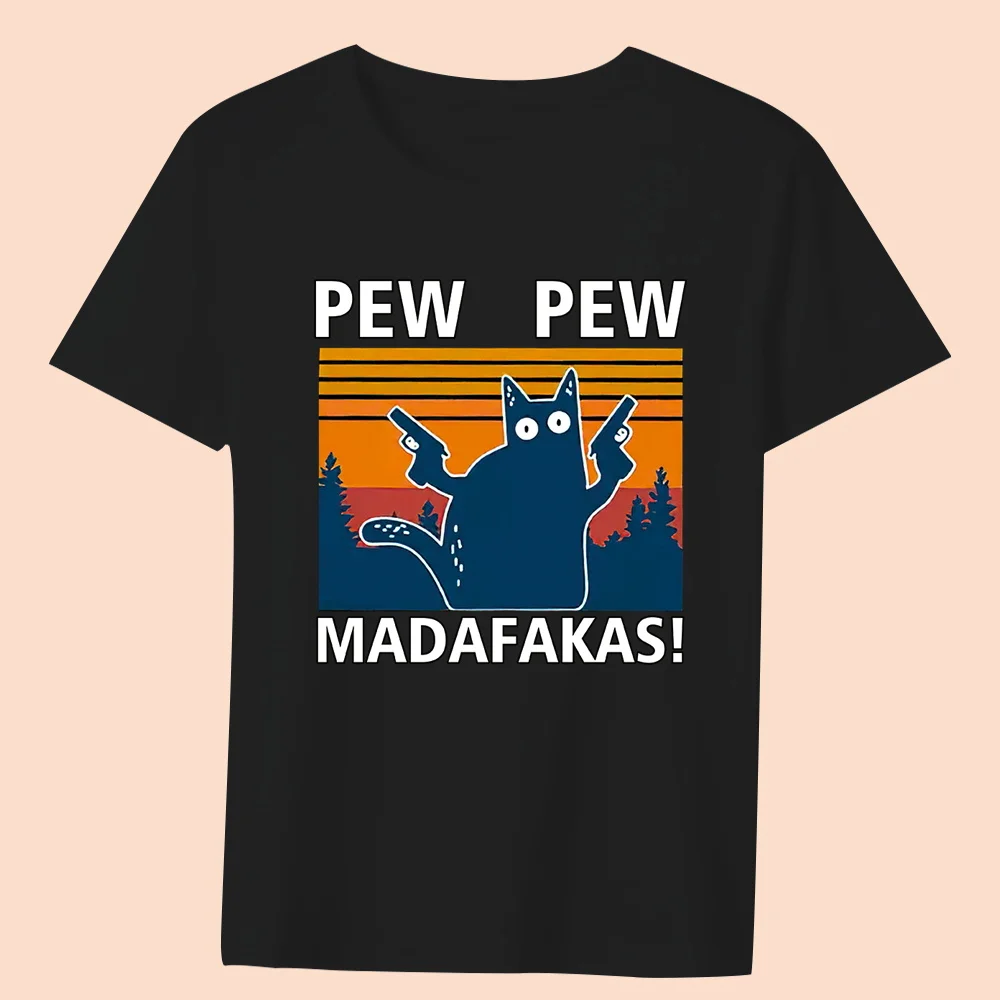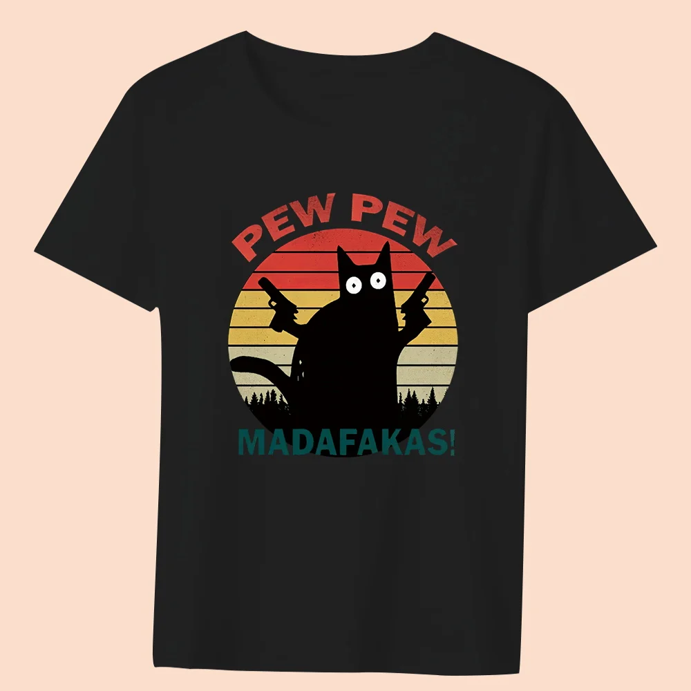 Women’s Clothing Black T-shirt Casual Top Basic Style Funny Animal Print Round Neck Slim Fit Commuter Soft Ladies Short Sleeve