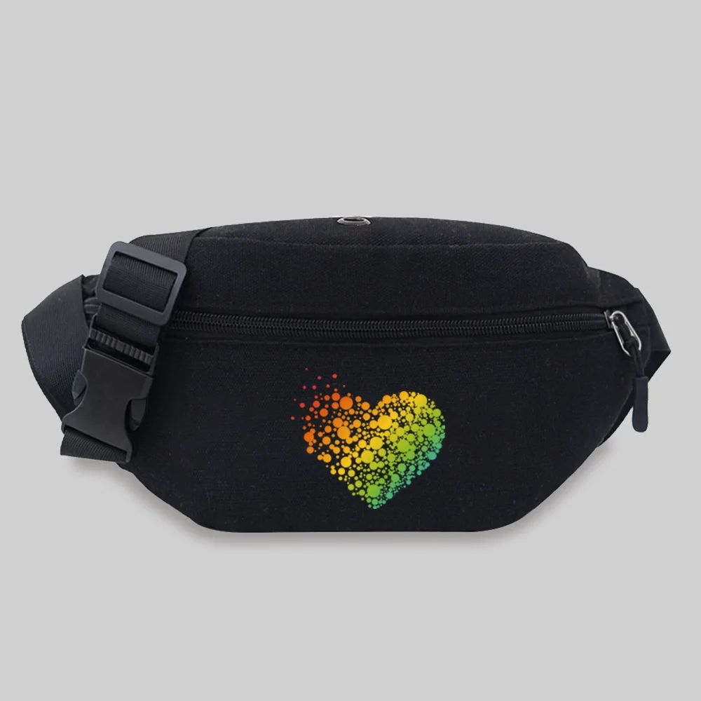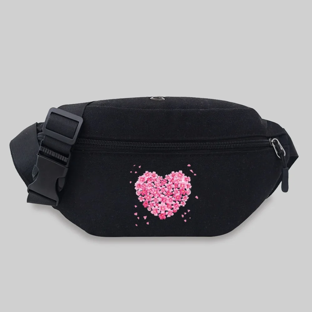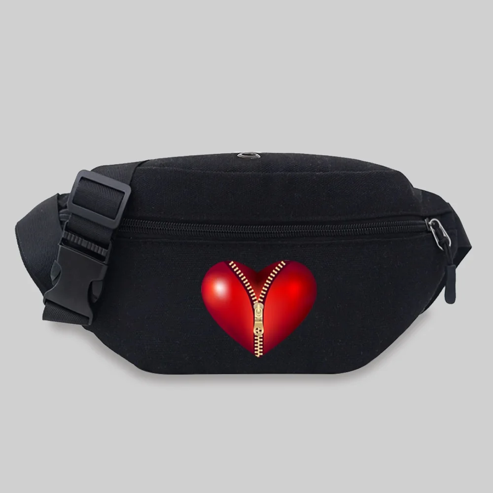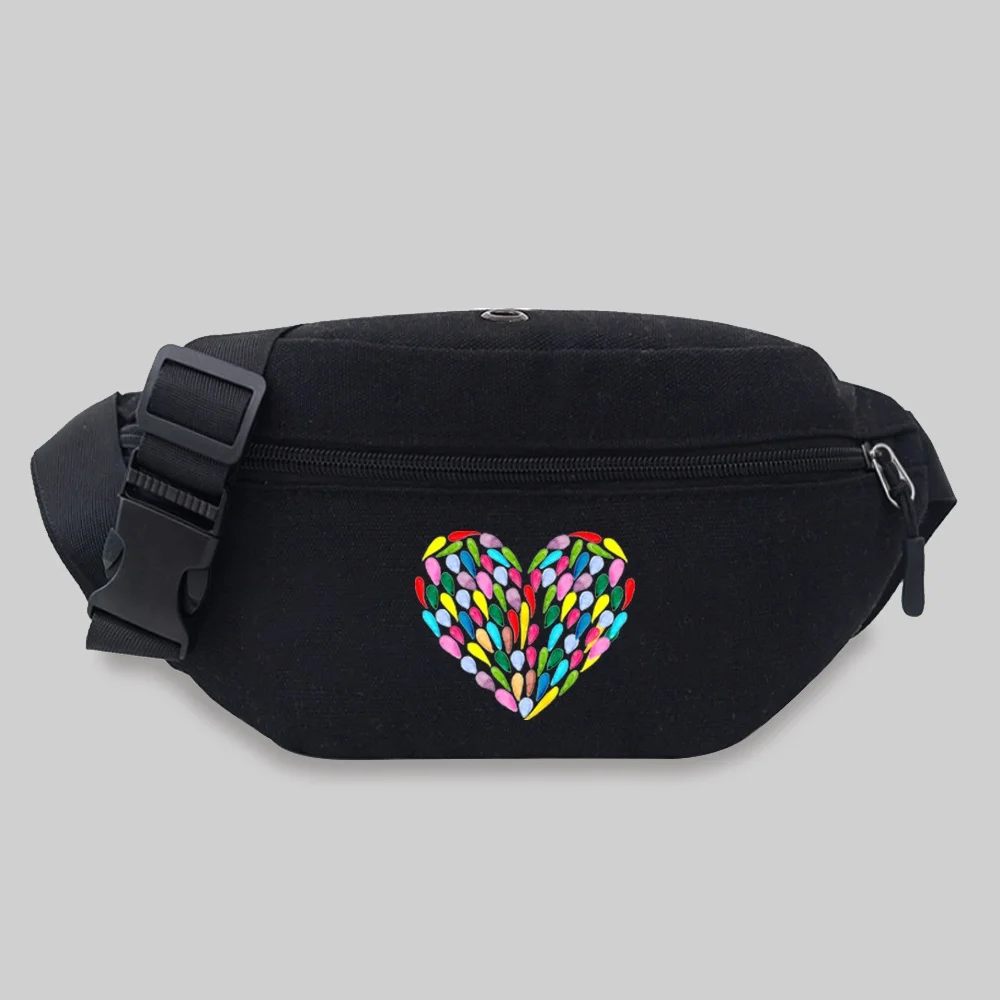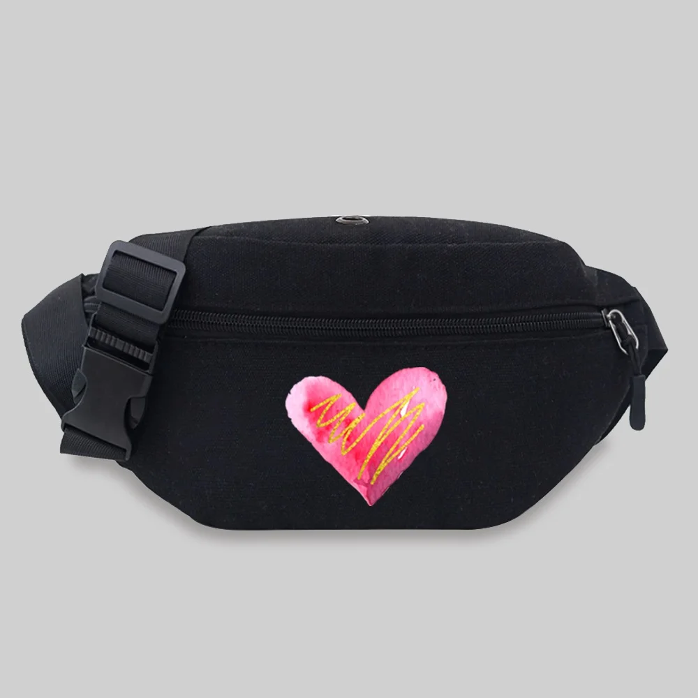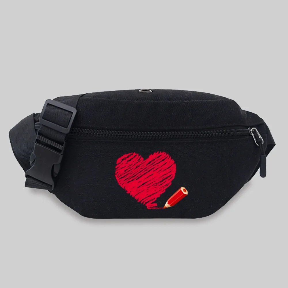 Women’s Sports Waist Bag Unisex Bum Bags Love Pattern Series Lightweight Black Outdoor Sports Chest Bag Wild Fanny Pack