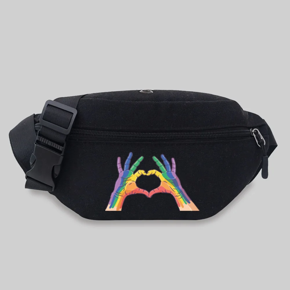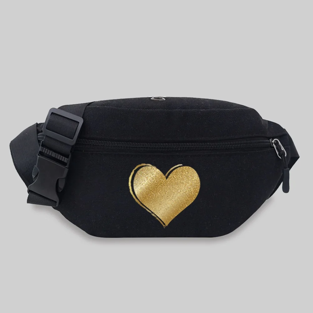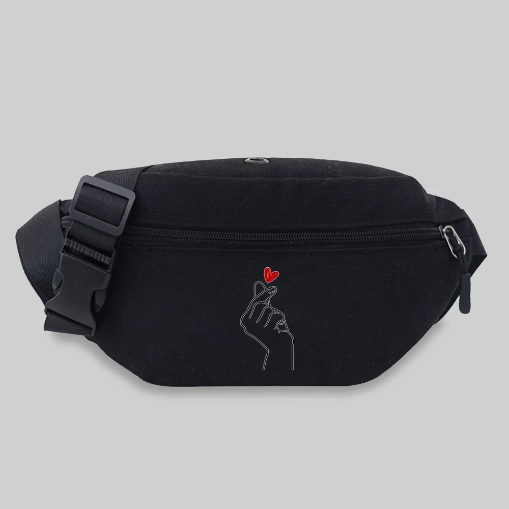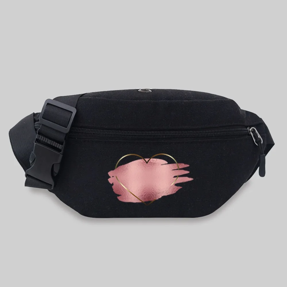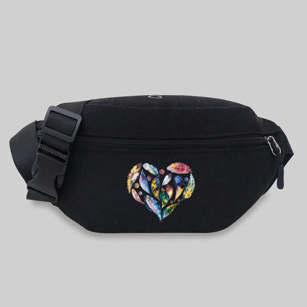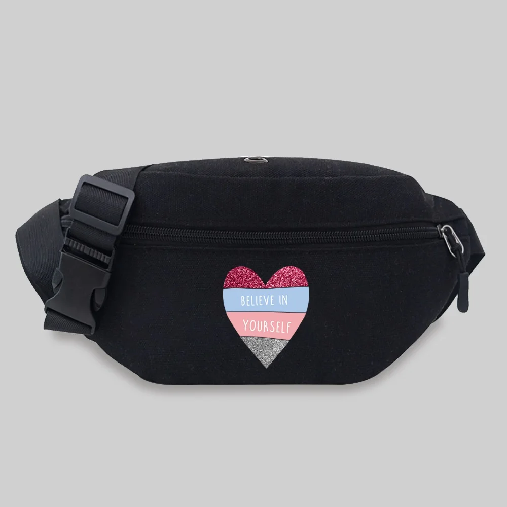 Women’s Sports Waist Bag Unisex Bum Bags Love Pattern Series Lightweight Black Outdoor Sports Chest Bag Wild Fanny Pack